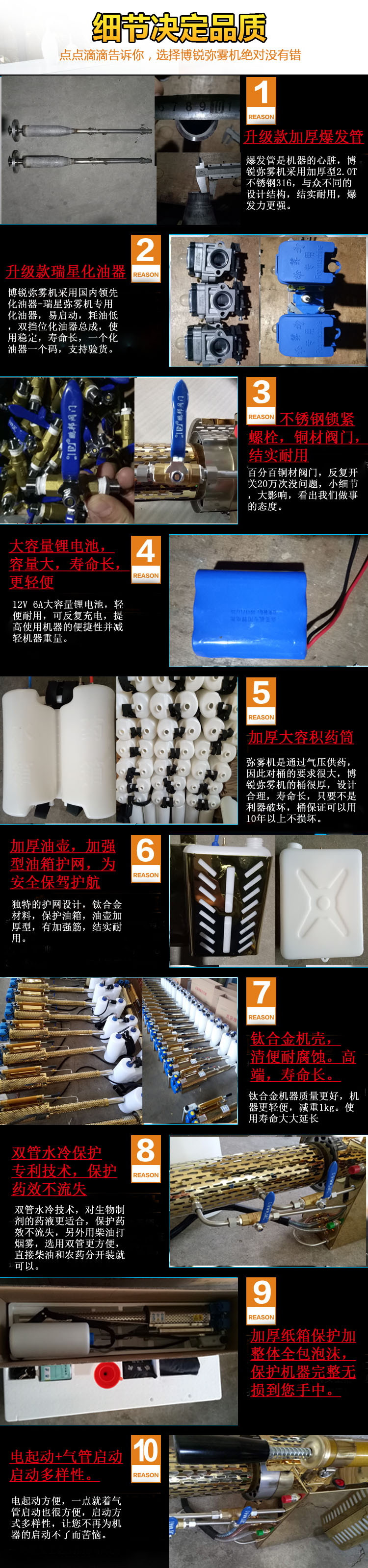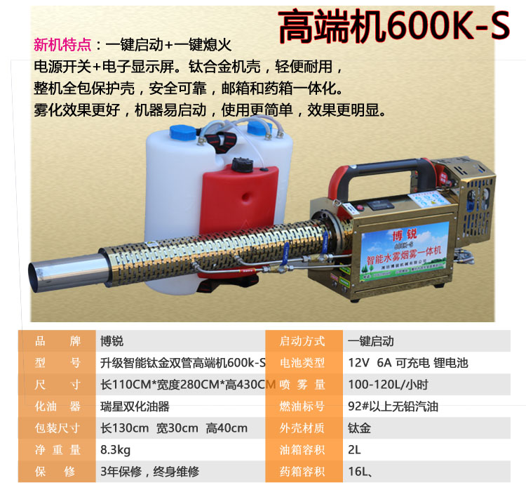 产品详情:种类技术,免维护脉冲喷气式发动机,整机运作时,无旋转部件,无润滑系统,构造简单,部件间无磨损,故障率低,用到寿命长,维护简单。低燃油,工作效率高,它是对树林,苗圃,果园,茶园,棉花,小麦,稻谷,玉米和其他大田农作物以及大片草坪的预防和控制。